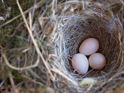 たまごが五こある巣を見つけ,