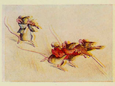 マザーグースには,なんとネズミの登場が多いことでしょう! 出没すると厄介者のネズミですが、このようにマザーグースに登場するネズミには愛着を感じます。輪唱で歌うことができ、17世紀初頭から歌われてきたそうです。最初の人(グループ)が”Three blind mice♪”と歌ったら、次の人(グループ)が”Three blind mice♪”と歌い始めます。だれかが間違えるまで歌い続けるというゲームも楽しいでしょう。