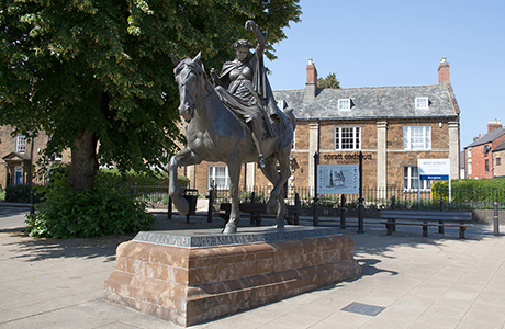 Banburyは,イングランド南東部のオックスフォードシャー州にある町です。13世紀には重要な羊毛取引の中心地に成長。運河や鉄道が通り,街は商業都市として成長していきました。当時も商業都市としてにぎやかでしたが,近年には高速道路が開通しロンドンから2時間弱で行けるようになり,いまでもBanburyは非常に魅力的で活気のあるショッピングの街です。またこの街は「Banbury Cakes」という,ドライフルーツをスパイスや砂糖で煮詰めたものを入れたパイでも有名です。町のシンボルである十字架の塔,Banbury Crossが立っている交差点の近くには,fine ladyの銅像があります。マザーグースは人々の生活のなかに存在しているのですね。