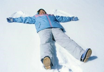 欧米の子どもたち定番の雪遊びです。白い雪面をキャンバスに,大の字に倒れて人型をつけ,手を上下に動かして天使の羽を,足を左右に開閉して服のすそを作ります。オプションは,頭の位置に顔を押しつけ,顔型も残しておきます。実は,この遊びを教えてくれたのは,私が携わったスプリングキャンプのプログラムに参加してくれたテューターとラボっ子たちでした。