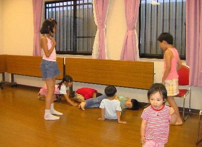 猛暑の続く中、お子さん達は至って元気、今日も元気にラボに集まってきます。「ホッレ おばさん」の練習も進み、ナレーションも少し入ってきているようでした。リーダーのお姉さんが場面作りに余念がありません。「ここは、こうしてあーして、やっぱりこうしよう」、テューターさんに意見を求めながらも、思った表現を形にしている様子。