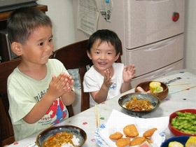 急遽、年少さん二名にも声をかけ、夕飯とお風呂だけいっしょに体験してもらうことに。