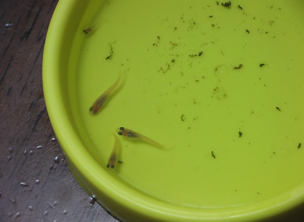 初めて我が家で孵化させることが出来たメダカ君たち、元気に育ってね。