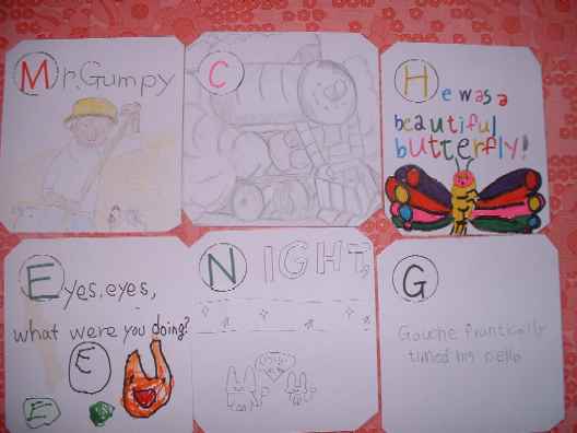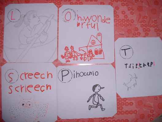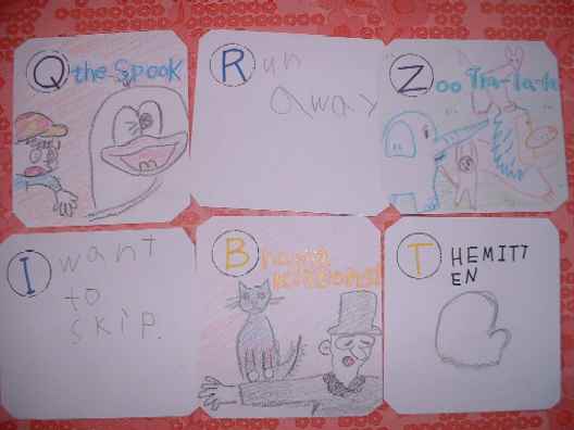 ラボ初めは,らぼっこたちの手作りカードで始まりました。自分の好きな物語に中から言葉をみつけて頭文字につなげました。
