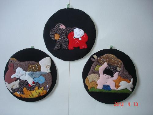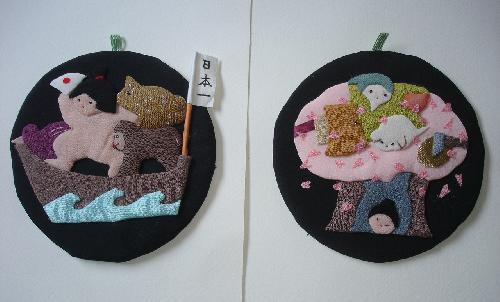 猿蟹合戦と金太郎。それと猫と十二支(猫の形の中に十二支の動物を入れた)