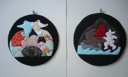まず、全部、綿を薄く載せて、黒縮緬を張った。その頃、頭の中では、押し絵で、季節の飾り物を作ろうと思っていた。