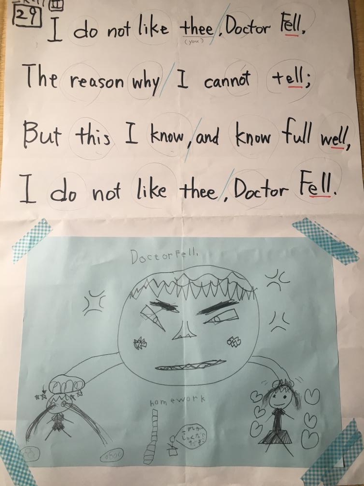 と、発言したのは、この夏、ホームスティに行っていたラボっ子。\"フェル先生\"には、取り組んでいないし、1度、発表を聞いただけ。