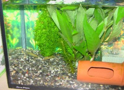 水草を買いに行ったら、2束でお買い得だったため、よせばいいのに2束欲張って、ちょっと窮屈?まっ良いか。画面では見えないと思いますが、2年ちょっと生きているヌマエビが2匹居ります。