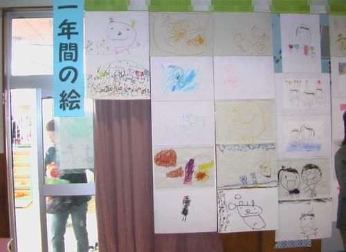 ウチの息子さん達は1号君もそうでしたが、事お絵かきに関しては線画が主体、絵を見ただけではほとんど何が描かれているのか判別のしがたい絵です。「その」では、描いたときに先生が細かくヒヤリングしてくれてここは何それ、これは何処でどうしているところなどキャプションを付けてくれてあります。一年が終了したときに、その作品をまとめて渡してくれます。