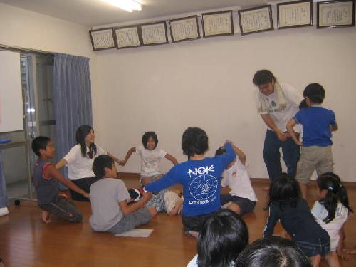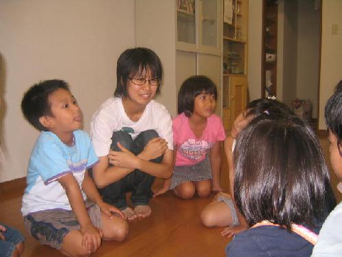 司会、CD係、お礼を言う係り、お礼の首飾りを作る係りはこの会場で活動している小学生・幼児が一人一役で受け持ってくれました。