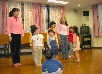 「終わりの言葉」を言い終わるかどうか、男の子達が戦いゴッコに発展、Aちゃんも負けじと「セーラームーン」の決め台詞をお得意のポーズでやっています。小学生リーダーのリクエストでソングバーをやったり、体を動かして、時間いっぱいまで動き回って終了・・・元気、元気!