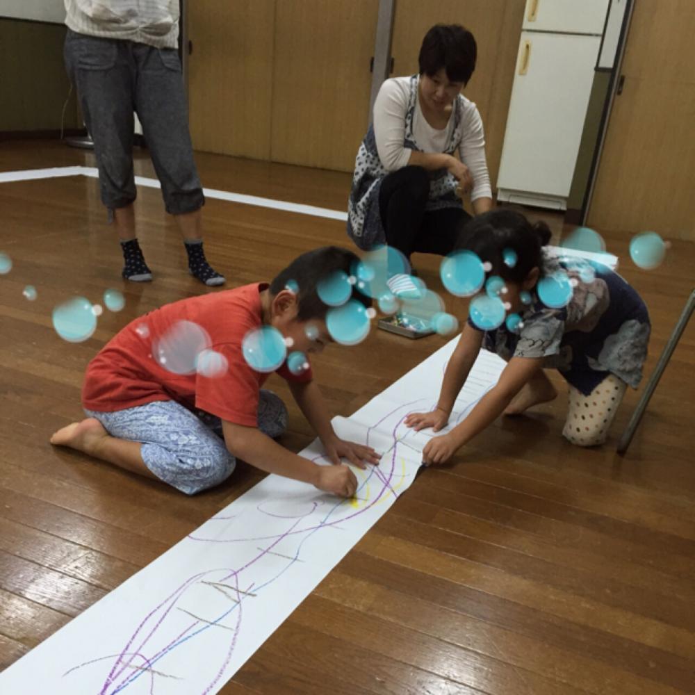 最後に、真っ白だった線路にクレヨンで線路や枕木、下水やくさーいゴミを描き込んで、走る!