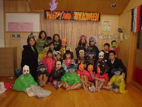 プレゼントし、ビニール袋で各自衣装を作り仮装しました。