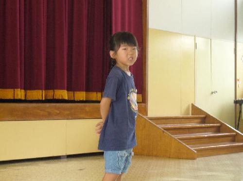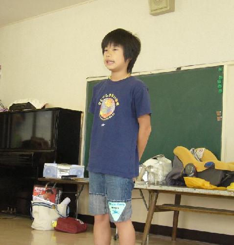 あのテンポで、最初から最後まで楽しそうに語ってくれて、見事でした!!言葉の面白さが、自分でも楽しくてしょうがない、という風に見ていて伝わってきました。夏の国際交流に向けて、このお話をお土産として完成させましょう。初めて聞く人にも楽しさを十分わかってもらうために、ことばを丁寧にゆっくり言う工夫もしてみてくださいね。ホストファミリーにも、きっと大うけすると思います!