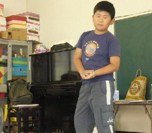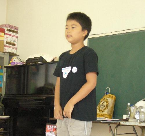●「ワフ家 月」(Y君・小4) ひとりテーマ表現で語ってくれました。言葉もしっかりと伝わってきて、歌の部分も楽しそうに歌えていました。途中で話を変えて素語りをやり直したので、最後までいくか心配だったけど、よく頑張ったね。びっくりしました!天王パーティまで時間をかけて通ってきてくれてるので、往復の車でいっぱいCDも聞いて、また好きな話も増やして行こうね。国際交流に素語りしたい話も、いろいろ考えておくのもいいですね。毎回楽しく聞かせてくれて、本当にありがとう!
