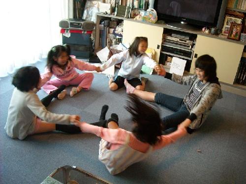 今回は休みが多く、寂しかったのでAちゃんが提案した「みんなでやれるRow Your Boat にしよう!」と言って星型にみんなで手をつないで