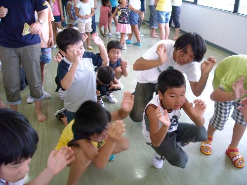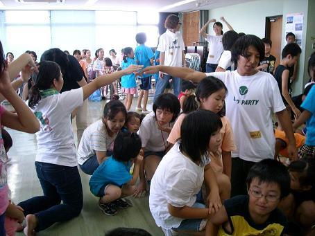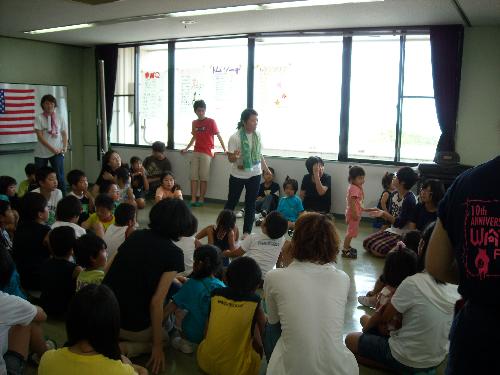 しかし矢張りたくさんの参加は望めたけれど、数パーティの合宿と前後させての設定だった事もあり、反省も残った。が大学生の熱気あふれるテーマ活動「ありときりぎりす」とそれらに関するクイズやテーマ活動の導入のグループ活動等は、参加した子ども達や親御さんを満足させてくれるもので大成功でした。子ども達がおはなしを喜んでくれる事が