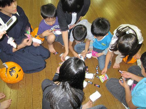毎年恒例のハロウィンバザー。ママ達は毎年趣向を凝らして、色々な手作り品を出して下さいます。パイ・クッキー・プラ板・マグネット・ポーチなど、沢山の素敵なものが並びました。ラボっ子達は、自分のママの作った物が買いたいようです(笑)このお金は、発表会の合同パーティ会場費に充てさせていただいてます。ありがたき幸せ!!!本当に助かります!!!