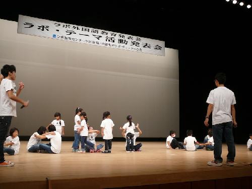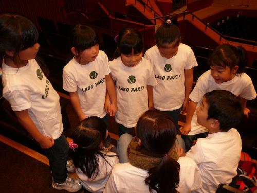 舞台袖で発表を待つラボっ子たちも小学生や幼児さんは全く普段と変わりなく