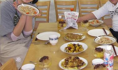 ご飯もお茶碗ではなくお皿に盛って食べてみました。「お皿は持たずに食べるんだよね」と言いながらも話に夢中になると、ついついお皿を手に持ってしまったりもしましたが、できるだけホームステイ中と同じような形で経験してみました。