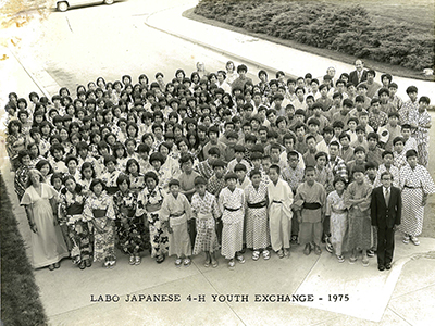 1975年 ネブラスカ州ホームステイ時の一枚 ラボでの思い出を二つお話しします。1975年,当時,私は中学2年生でしたが,ラボの国際交流ブログラムで1カ月間,アメリカのネブラスカ州にホームステイをしました。アメリカの中西部の農村地帯で,日本から来たというだけで大歓迎してくれました。